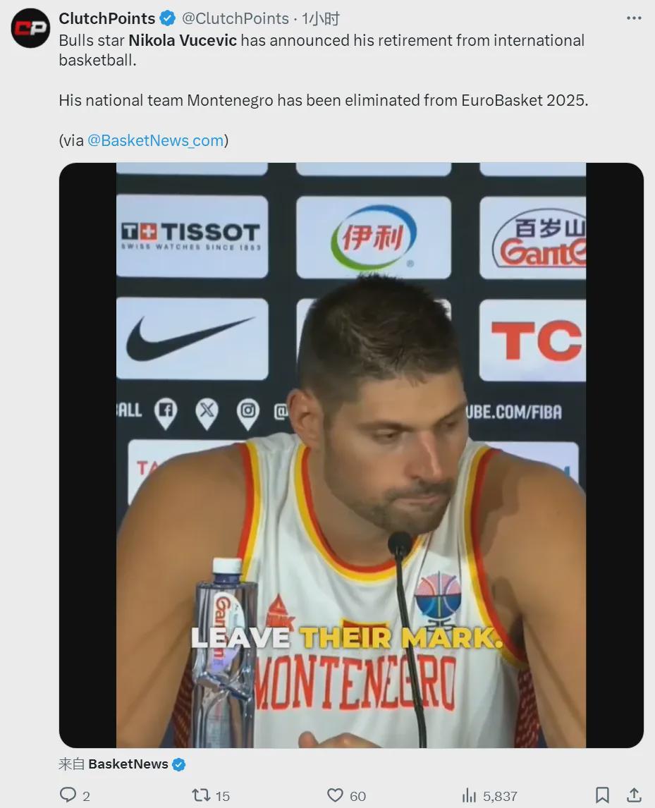 在2024-25赛季,武切维奇效力于公牛,场均贡献18.5分10.1篮板3.5助攻0.8抢断0.7封盖,三项命中率分别是53%、40.2%和80.5%,公牛同样看不到太好的前景,因此希望送走武切维奇,至少换来1个首轮签。